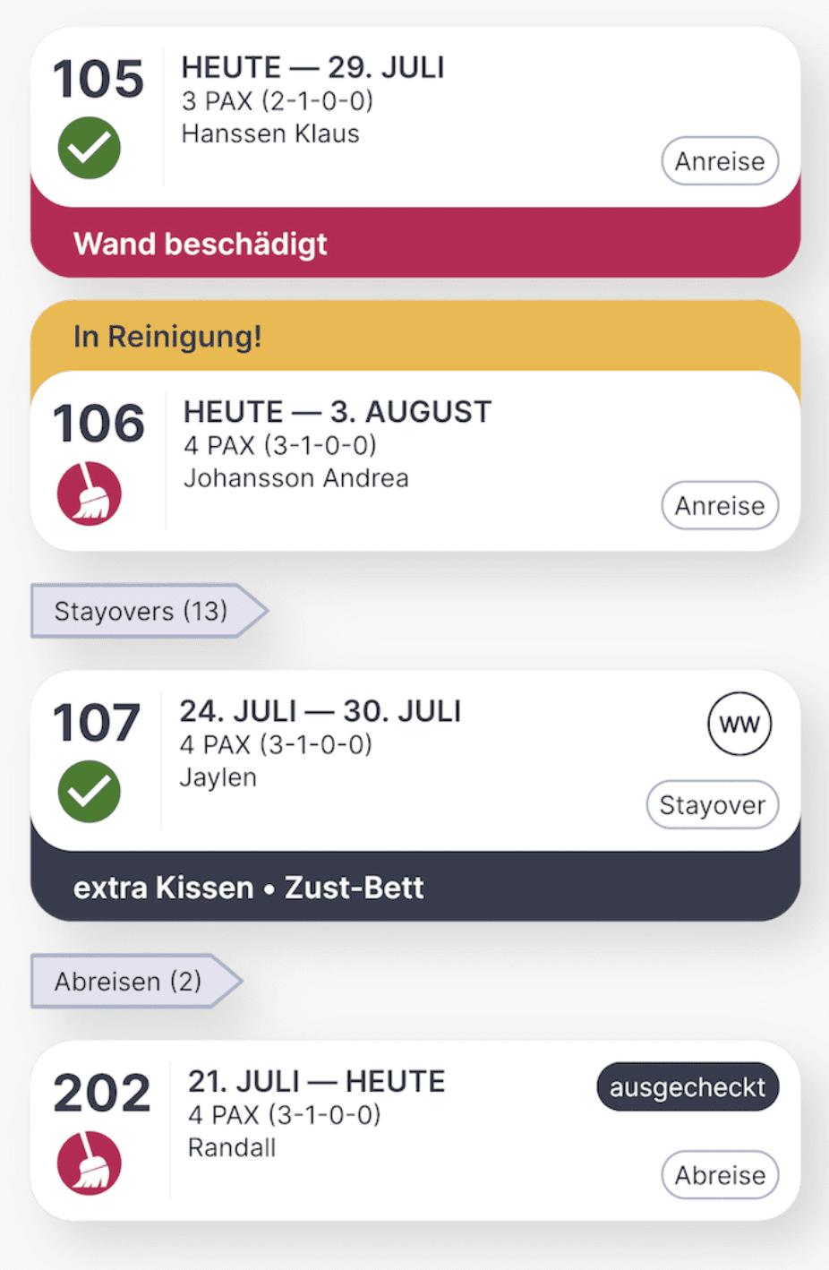 Sonderwünsche, z B. extra Kissen oder Allergikerbettwäsche werden deutlich sichtbar hervorgehoben, damit kein Wunsch mehr verloren geht.